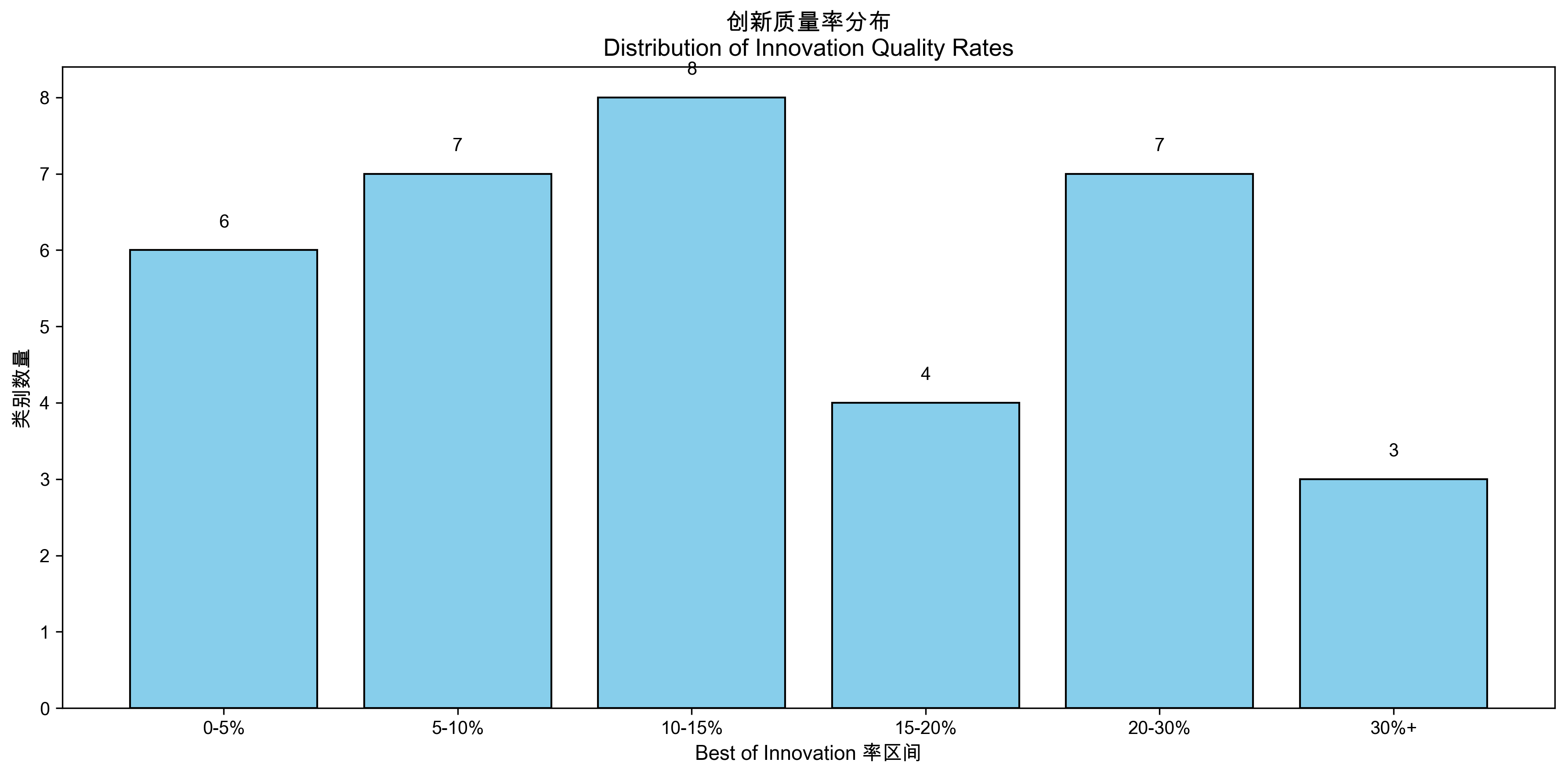 2. 质量分化明显: 高质量类别与低质量类别差距显著,反映创新难度差异
