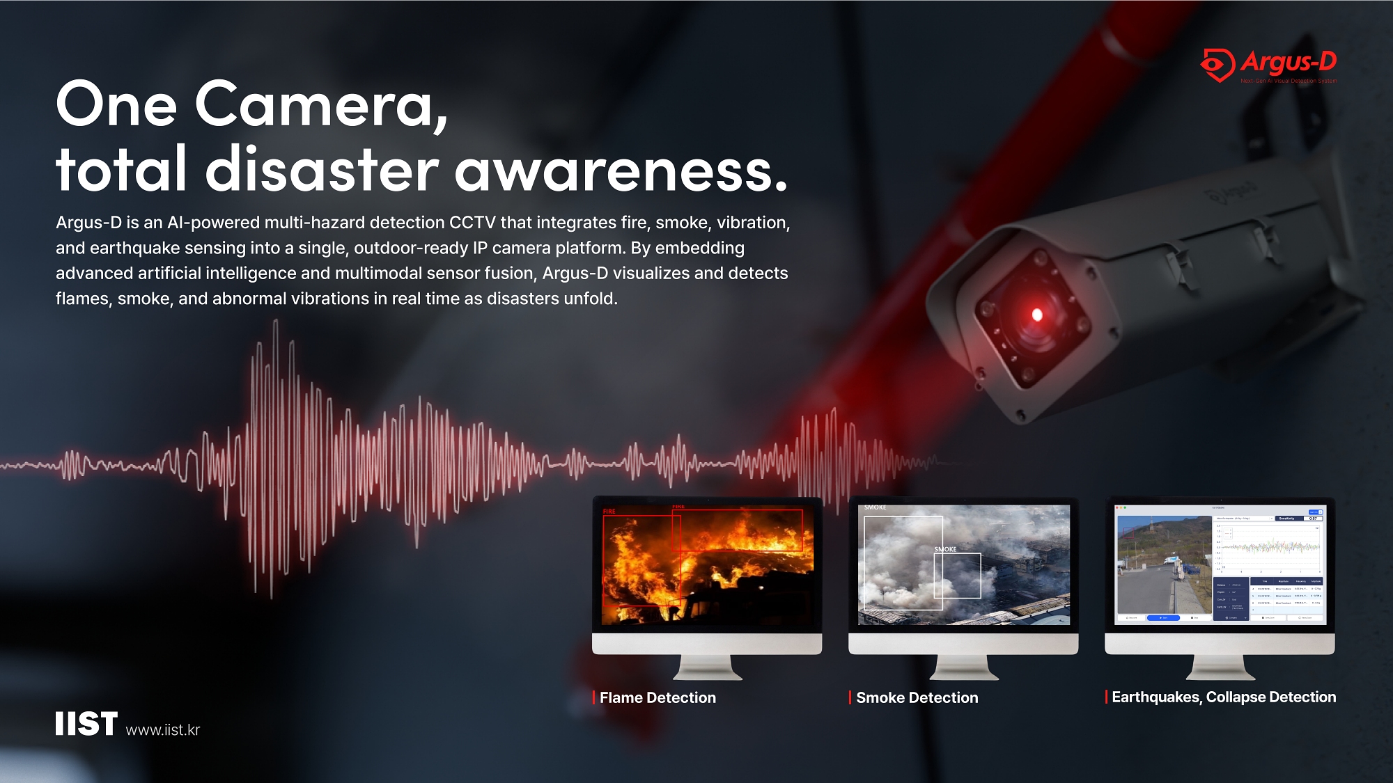 Argus-D 是一款基于人工智能的灾害检测闭路电视,将先进的人工智能和多模态技术集成到传统安防摄像机的核心。在气候变化导致大规模灾害日益增多的时代,Argus-D 通过快速检测统计上普遍存在的威胁(如森林火灾、建筑物倒塌和地震)提供了一个关键解决方案。为了克服传统基于服务器的 AI 解决方案的局限性,Argus-D 集成了多模态传感器和尖端的物理 AI。这种技术融合提供了卓越的性能,包括火灾检测准确率超过 99%。对于地震事件,它超越了简单的检测,能够分析 P 波和 S 波以确定震中的方向和距离。通过 UL 和 FCC 认证,Argus-D 结合了视觉智能、传感器融合和智能物联网连接,为人员、财产和下一代安全基础设施提供主动的灾害保护。
